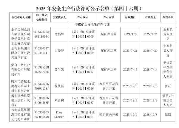 附件:2025年安全生产行政许可决定公示名单(第四十六期)