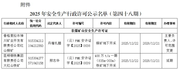 附件:2025年安全生产行政许可决定公示名单(第四十八期)