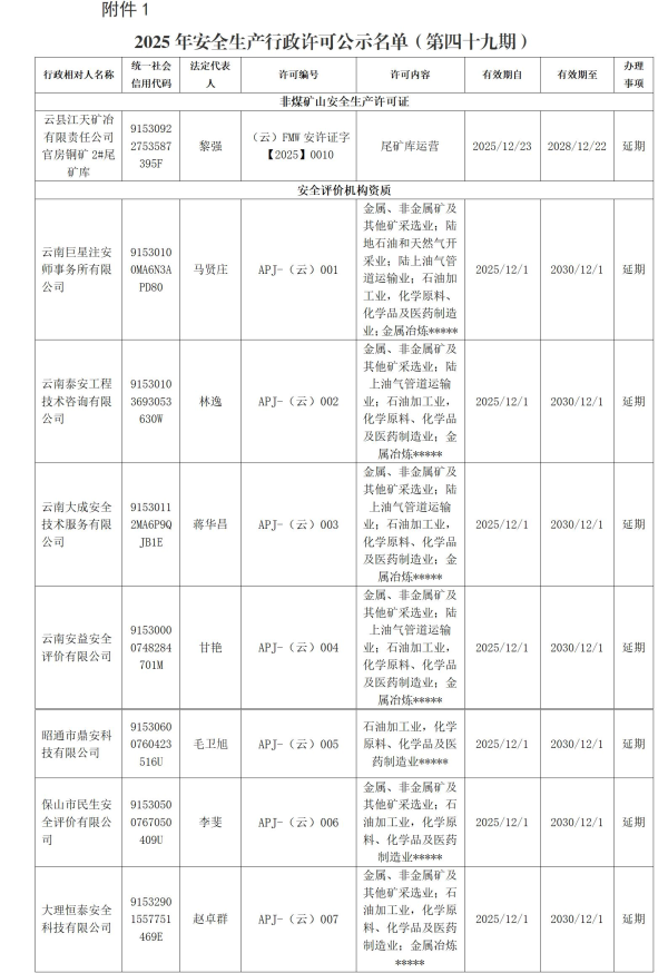 1.2025年安全生产行政许可决定公示名单(第四十九期)