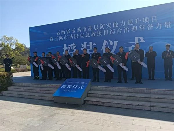 近日,玉溪市举行基层防灾能力提升项目暨基层应急救援和综合治理常备力量授装仪式。