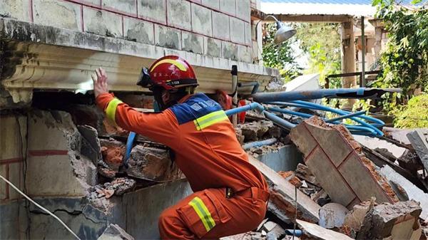 但灾情不容犹豫。3月29日晚,抵达内比都欧达拉蒂利医院救援现场,队员们立马充满斗志。“任务来了,这是每个应急救援人的本能反应。”穆树元和队员们迅速行动起来,对现场进行安全评估、寻找生命迹象,并积极与缅方救援力量沟通协调……