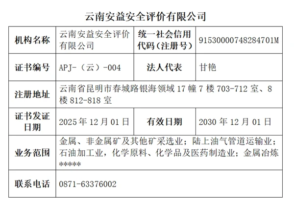 云南安益安全评价有限公司