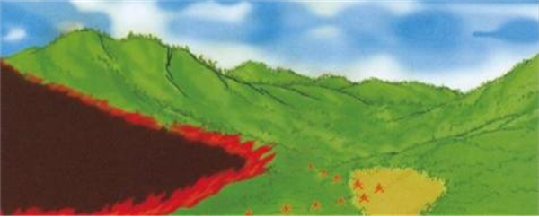 5.草塘沟。草塘沟是指林地内或林缘集中分布有杂草的沟洼地形,沟内通常为细小可燃物连续分布。林火在草塘沟燃烧时,火强度大,同时会向两侧山坡蔓延,形成冲火。草塘沟是林火蔓延的快速通道(图1-5)。