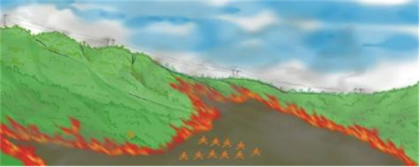 图1-13 强行打开缺口进入火烧迹地避险示意图