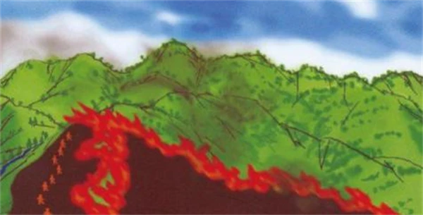 5.轰燃。在地形起伏较大的山地条件下,由于沟谷两侧山高坡陡,当一侧森林燃烧剧烈,火强度很大时,所产生强烈的热水平传递(主要是热辐射)容易到达对面山坡。当对面山坡接受足够热量时,会突然产生爆炸式燃烧,这种现象称为轰燃。轰燃主要发生在狭窄山谷和陡坡(狭窄山谷的两侧崖壁为陡坡)两种地形,在大载量细小可燃物、林火从山下向山上燃烧,以及大量的热辐射使可燃物几乎同时到达燃点易引发轰燃。