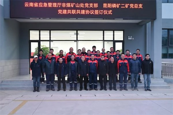 近日,云南省应急管理厅非煤矿山处党支部、昆阳磷矿二矿党总支在昆阳磷矿二矿举行党建共联共建签订仪式,开展党建共联共建,进一步持续深化政企合作,将党建工作与地下矿山安全管理、精准帮扶指导紧密结合,实现政企资源互补、责任共担、长效联动,构建“党建引领、政企协同、共筑安全”的非煤矿山安全管理新格局。省应急管理厅党委委员、副厅长王旭斌以普通党员的身份全程参加活动,在认真听取了昆阳磷矿二矿采矿方法优化情况介绍后,与矿山企业进行深入研讨,并从安全、生产、效益三个方面提出意见和建议。