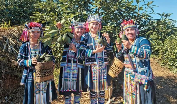 近年来,云南立足资源禀赋,积极引进特色水果规模化种植,已发展成为牛油果、蓝莓等的全国主产区,有效带动农民持续增收。图为普洱市孟连县农户采摘牛油果。云南日报社供图