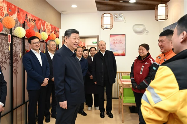 位于西城区北草厂胡同的“吾老·新街”养老服务街区,近年来推进无障碍和适老化改造,为老年人提供多元化养老服务。10日上午,习近平来到这里,走进新街口街道父母食堂,察看菜品、价格和就餐环境,仔细询问食堂开展养老助餐服务情况。见到在这里休息的快递小哥,习近平关切询问他们的工作和生活,为他们付出的辛劳和作出的贡献点赞。他指出,尊老敬老是中华民族传统美德,爱老助老是全社会共同责任。各级党委和政府要统筹各类资源,推动养老服务扩容提质、持续发展,努力为老年人安享幸福晚年创造更好条件。