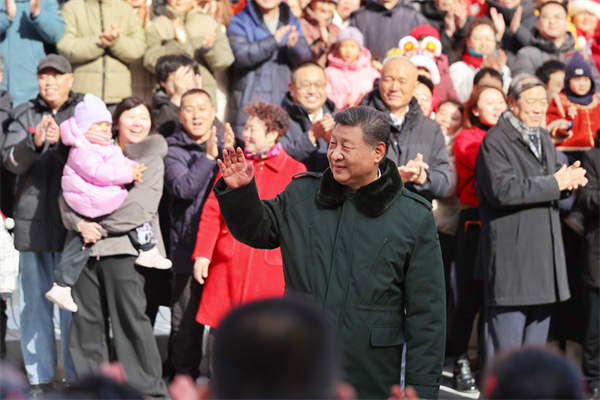 2月9日至10日,中共中央总书记、国家主席、中央军委主席习近平在北京考察并看望慰问基层干部群众。这是10日上午,习近平在东城区隆福寺街区考察时,向现场群众挥手致意。新华社发(肖翊 摄)