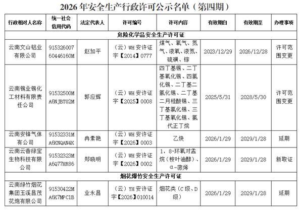 附件:2026年安全生产行政许可决定公示名单(第四期)