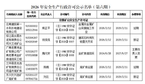 附件:2026年安全生产行政许可决定公示名单(第六期)