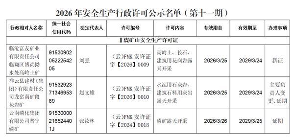 附件:2026年安全生产行政许可决定公示名单(第十一期)