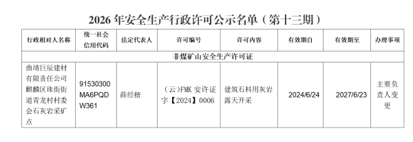 附件:2026年安全生产行政许可决定公示名单(第十三期)