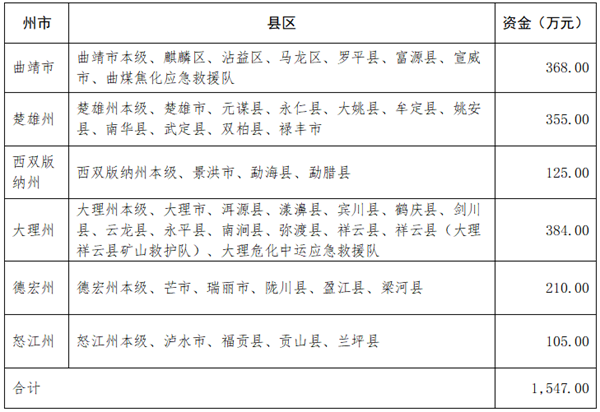 2024年3月21日,省应急管理厅、省财政厅下达16个州(市)省级冬春救助补助资金2000万元。重点选取大理州、楚雄州、怒江州、德宏州、曲靖市、西双版纳州6个州(市)43个县(市、区)开展实地评价,抽取项目资金561万元,占全省项目资金总额的28.05%。