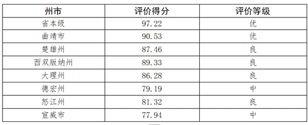 综合评价得分90.54分,评价等级为“优”。抽样州(市)评价结论如下表: